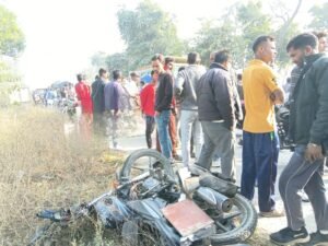 Lakhimpur Kheri: उत्तर प्रदेश के जनपद लखीमपुर खीरी में तेज रफ्तार वाहनों का कहर लगातार जानलेवा साबित हो रहा है। ताजा मामला थाना मैलानी क्षेत्र के अंतर्गत संसारपुर चौकी इलाके का है, जहाँ नेशनल हाईवे-730 (खुटार रोड) पर हुए भीषण सड़क हादसे में एक युवक की मौके पर ही मौत हो गई, जबकि दो अन्य लोग गंभीर रूप से घायल हो गए। यह दर्दनाक हादसा संसारपुर और नौवाखेड़ा के बीच उस समय हुआ, जब बाइक सवार खुटार की ओर जा रहे थे। तभी सामने से आ रही तेज रफ्तार कार ने बाइक को जोरदार टक्कर मार दी। टक्कर इतनी भीषण थी कि बाइक के परखच्चे उड़ गए और चालक विवेक की घटनास्थल पर ही मौत हो गई।