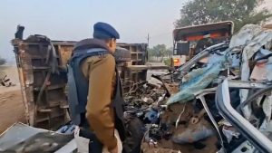 MP NEWS: इस दौरान कार का आधा हिस्सा ट्रॉली के नीचे चला गया और कार सवार पांच लोगों की मौके पर ही मौत हो गई. शव ट्रैक्टर ट्रॉली और कार के बीच फंसे हुए थे. कार पूरी तरह चकनाचूर हो गई. सूचना पर पुलिस पहुंची और ग्रामीणों की मदद से कटर से गाड़ी काटकर शवों को निकालने का प्रयास शुरू किया गया. अभी मृतकों की पहचान नहीं हो पाई है.